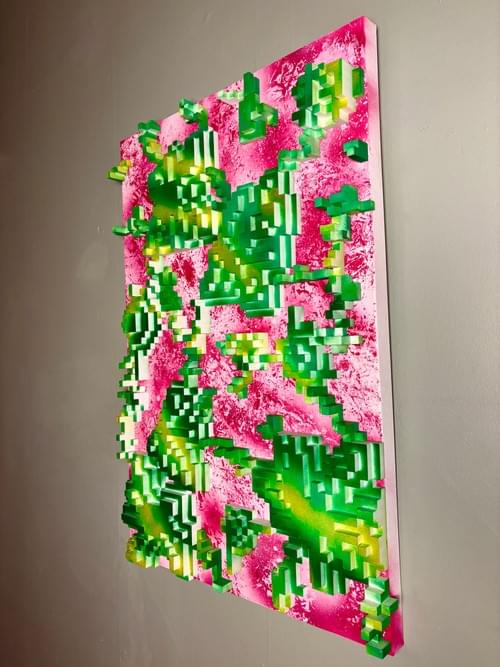24x36x3in Spray Paint and Custom 3D Prints on Canvas